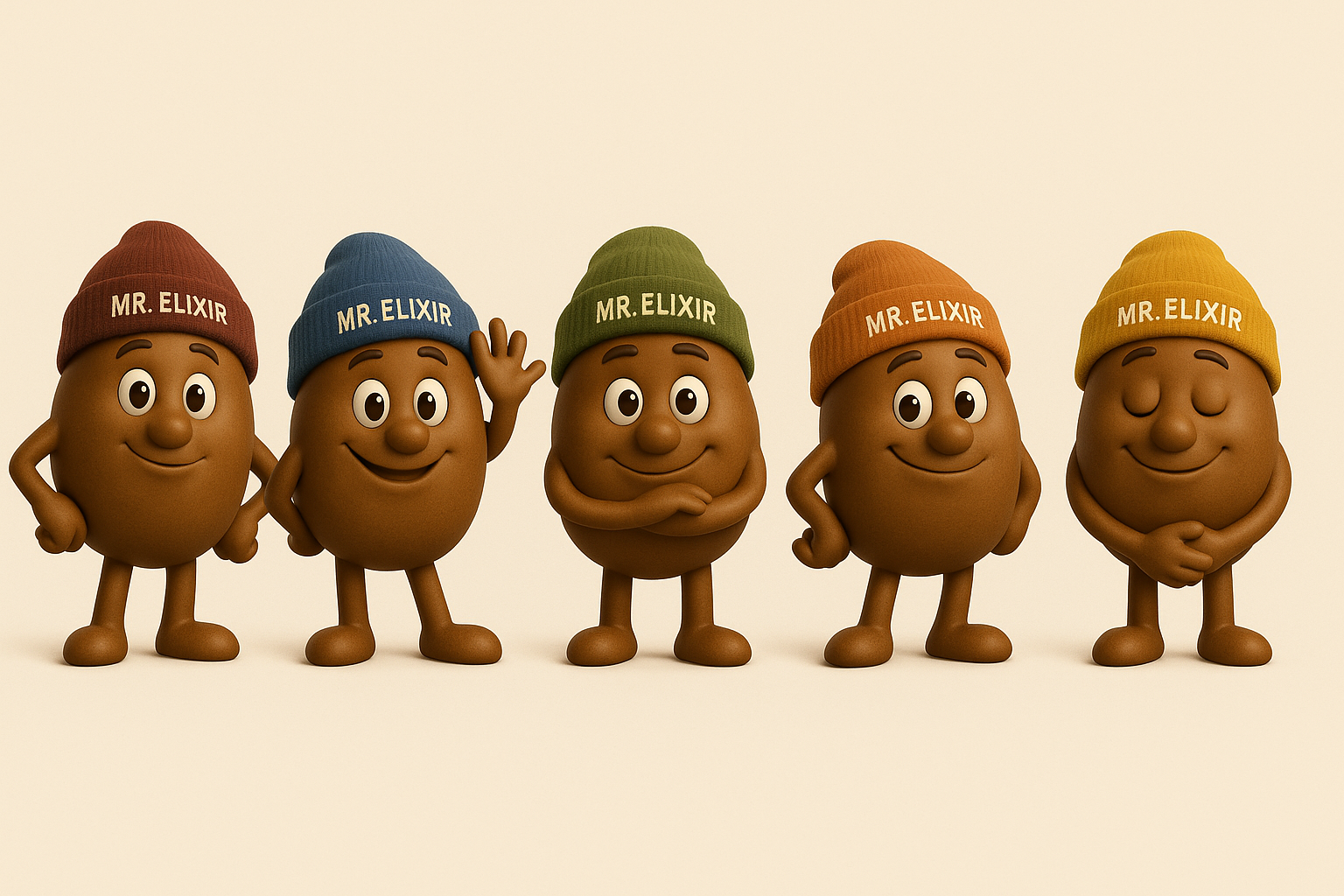 And at the heart of our brand is Mr. Elixir — our signature mascot. He embodies the spirit of Bean Elixir: playful, warm, and endlessly curious. Mr. Elixir reminds us that great coffee should feel alive and accessible, whether you're discovering a new flavor or returning to a beloved daily brew.
